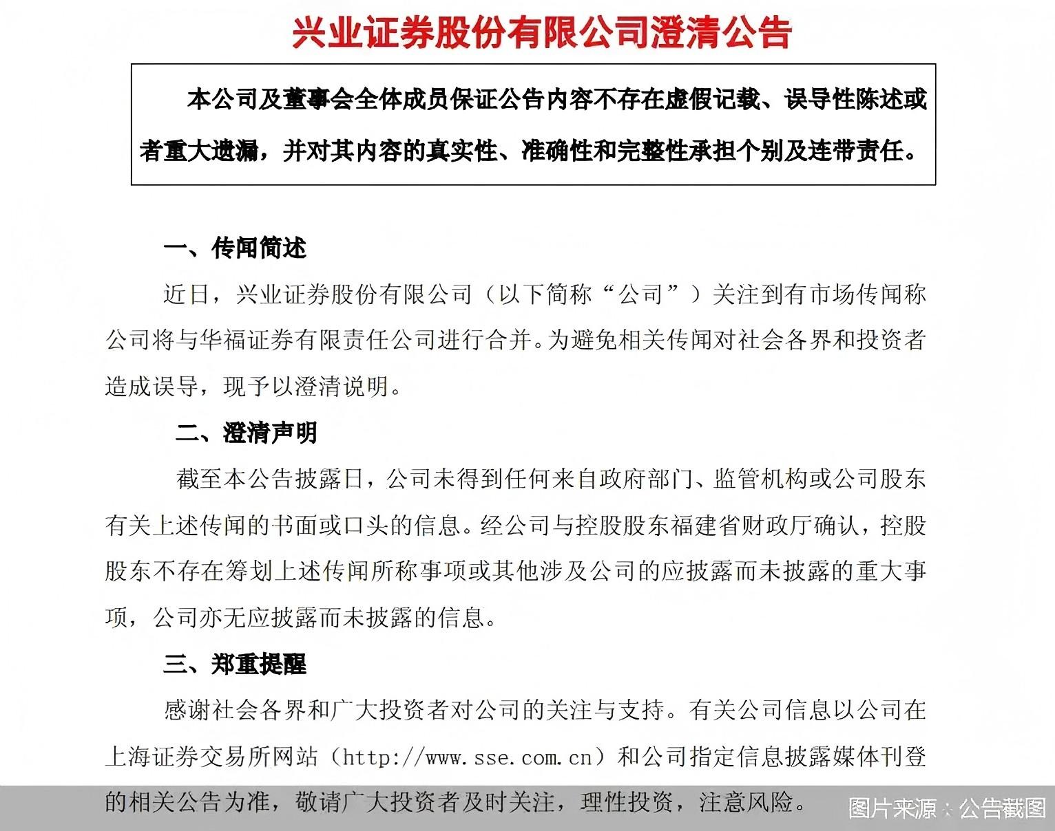 6月11日,興業(yè)證券發(fā)布澄清公告表示,近日,關(guān)注到有市場(chǎng)傳聞稱公司將與華福證券進(jìn)行合并。為避免相關(guān)傳聞對(duì)社會(huì)各界和投資者造成誤導(dǎo),現(xiàn)予以澄清說(shuō)明。