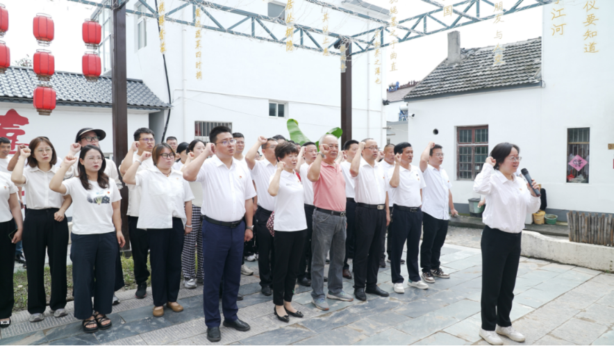 紅色“騎”跡,不僅是一次地理上的追尋,更是一次深刻的精神回溯?;顒?dòng)最后,在場(chǎng)全體黨員莊嚴(yán)重溫入黨誓詞,鏗鏘誓言在研學(xué)館外回響,彰顯了六郎鎮(zhèn)黨員干部賡續(xù)紅色血脈、永葆政治本色的堅(jiān)定決心。