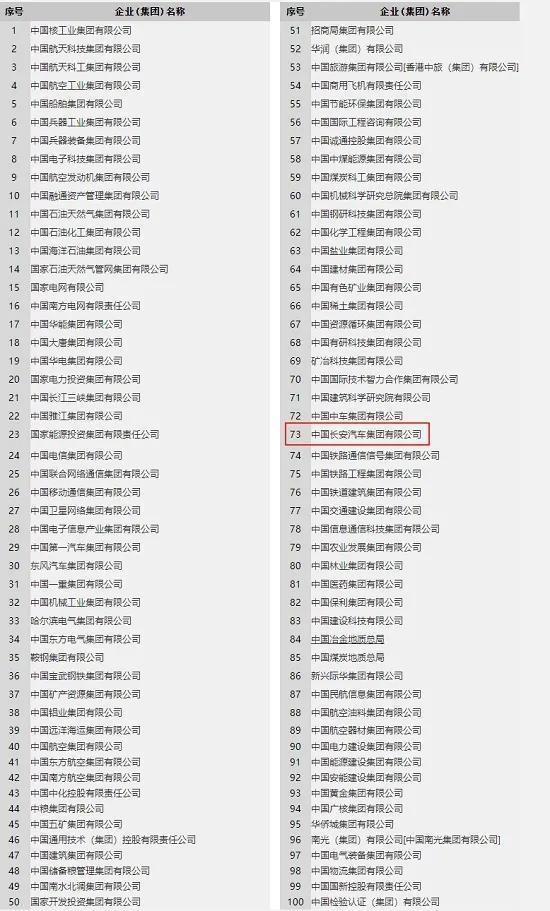 此外,中國(guó)經(jīng)濟(jì)網(wǎng)記者查詢到,目前國(guó)務(wù)院國(guó)資委網(wǎng)站的央企名錄已經(jīng)完成更新,其中,中國(guó)長(zhǎng)安汽車集團(tuán)已正式入列,序號(hào)為73位,這也是繼新增的中國(guó)雅江集團(tuán)之后,由國(guó)務(wù)院國(guó)資委直接管理的第100家央企。