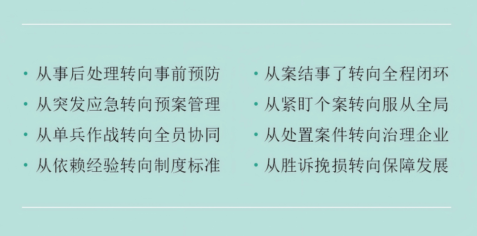 從事企業(yè)法務(wù)工作的人員基本都認同商事案件管理對企業(yè)法律事務(wù)乃至企業(yè)發(fā)展的重要意義。當(dāng)前,部分企業(yè)法務(wù)人員往往談單個商事案件正面應(yīng)對處置的多,推進各類商事案件多元化解和系統(tǒng)管理的少, 常常執(zhí)著于案件勝訴挽回損失,卻忽視如何更好服務(wù)企業(yè)高質(zhì)量發(fā)展。