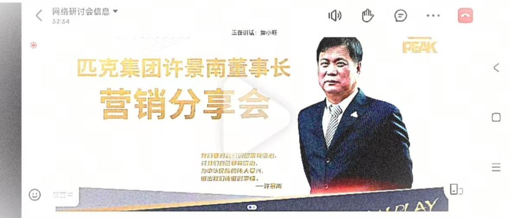 多位員工介紹,9月17日上午的分享會(huì),對(duì)外通知為關(guān)于三觀培訓(xùn)和加強(qiáng)內(nèi)控管理。主講人為董事長(zhǎng)許景南,參會(huì)人員顯示為公司各單位主管級(jí)及以上人員、生產(chǎn)公司車間主任級(jí)及以上人員必須現(xiàn)場(chǎng)參加,也歡迎其他員工在合理安排工作下積極參與。談及管理分享會(huì),多位員工表示,內(nèi)部稱之為“三觀培訓(xùn)會(huì)”,匹克通常一周到兩周開一次,由董事長(zhǎng)一個(gè)人主講,一般要求管理人員參加,在總部的現(xiàn)場(chǎng)參加,外地的線上參會(huì),開會(huì)時(shí)長(zhǎng)基本為半天。
