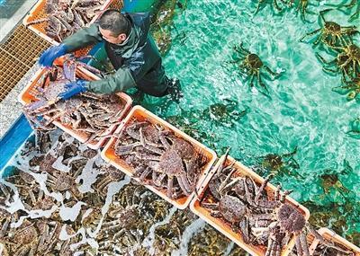 新疆吉木乃口岸優(yōu)化通關(guān)服務(wù),壓縮通關(guān)時(shí)間,實(shí)現(xiàn)“即到即驗(yàn)”,讓“絲路美食”加速走向餐桌。圖為進(jìn)口帝王蟹通過(guò)查驗(yàn)后準(zhǔn)備裝箱發(fā)往市場(chǎng)。記者 李亞楠攝