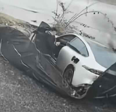 一段網絡視頻顯示,一輛汽車失控滑入路旁溝里,隨后冒出濃烈黑煙和火焰。車主下車后嘗試打開后車門,但車門無法從外部開啟。有人員上前砸窗,后排乘客才被救出。