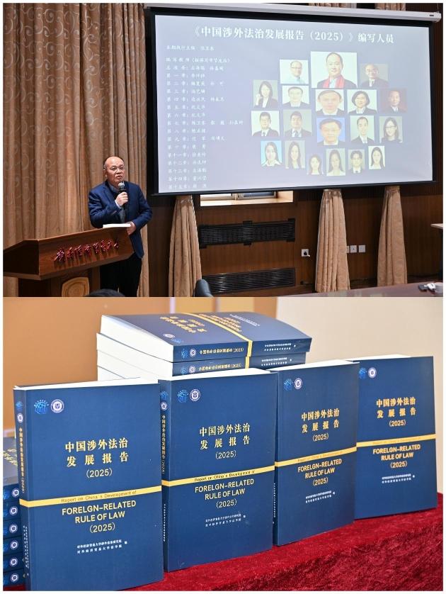 對外經(jīng)濟貿(mào)易大學(xué)涉外法治研究院常務(wù)副院長陳衛(wèi)東作工作匯報。報告系統(tǒng)梳理了2025年中國涉外法治發(fā)展重大事件,總結(jié)了我國在共建“一帶一路”、數(shù)據(jù)治理、營商環(huán)境、對外交往、反制裁、出口管制、對外貿(mào)易、涉外投資、涉外金融、反壟斷、知識產(chǎn)權(quán)、國際私法、國際商法、海商海事、國際商事爭議解決等15個涉外法治領(lǐng)域的主要進(jìn)展與亮點,全面展現(xiàn)了我國在涉外立法、執(zhí)法、司法、法律服務(wù)和主動參與國際規(guī)則制定等方面的最新成果。
