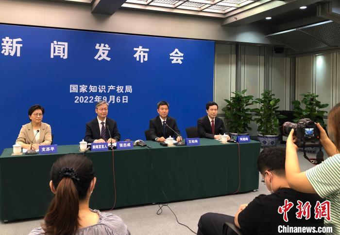 國家知識產權局舉行9月例行新聞發(fā)布會會場。 中新社記者 孫自法 攝