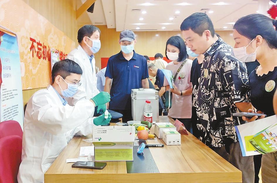 近日,北京市東城區(qū)王府井地區(qū)食品安全示范樓宇創(chuàng)建啟動儀式在王府井百貨大樓舉行。此次示范樓宇創(chuàng)建將采取政府主導(dǎo)和社會監(jiān)督相結(jié)合、部門監(jiān)管與業(yè)主自律相促進的辦法,充分發(fā)揮優(yōu)秀典范的帶動作用,全面提高食品經(jīng)營者主體責(zé)任意識、誠信意識和食品安全管理水平。圖為啟動儀式上工作人員對社會關(guān)注度較高的食品進行現(xiàn)場檢測。(董芳忠)