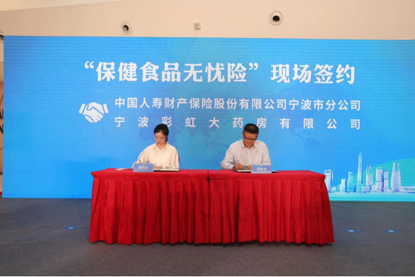 在食責險“寧波模式”提質(zhì)專場,發(fā)布“保健食品無憂險”,這也是該保險的全國首發(fā)。寧波彩虹大藥房有限公司與寧波市食品安全責任保險共保體承保人中國人壽財產(chǎn)保險股份有限公司寧波市分公司簽訂首份投保協(xié)議。