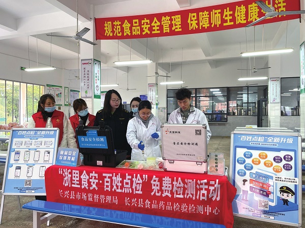 近日,浙江省湖州市長(zhǎng)興縣市場(chǎng)監(jiān)管局聯(lián)合長(zhǎng)興縣食品藥品檢驗(yàn)檢測(cè)中心,開展“浙里食安·百姓點(diǎn)檢”校園食品免費(fèi)檢測(cè)活動(dòng),筑牢校園食品安全防線,防范校園食品安全事故發(fā)生。此次檢測(cè)主要圍繞校園食堂的果蔬開展農(nóng)藥殘留檢測(cè),通過邀請(qǐng)老師和學(xué)生家長(zhǎng)代表參觀果蔬的克百威、啶蟲脒等農(nóng)藥殘留項(xiàng)目快速檢測(cè)過程,讓其了解食品檢測(cè)的基本流程,督促學(xué)校從嚴(yán)從實(shí)從細(xì)做好校園食品安全管理。