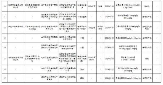 近期,江蘇省市場監(jiān)督管理局組織食品安全抽檢,抽取淀粉及淀粉制品、炒貨食品及堅果制品、糕點、可可及焙烤咖啡產品、速凍食品、飲料、食用農產品、水產制品、糧食加工品、餐飲食品、乳制品、肉制品、食用油、油脂及其制品、調味品和酒類等15大類食品707批次樣品,檢出其中淀粉及淀粉制品、調味品、糕點、酒類、食用農產品和飲料等6大類食品17批次樣品不合格。