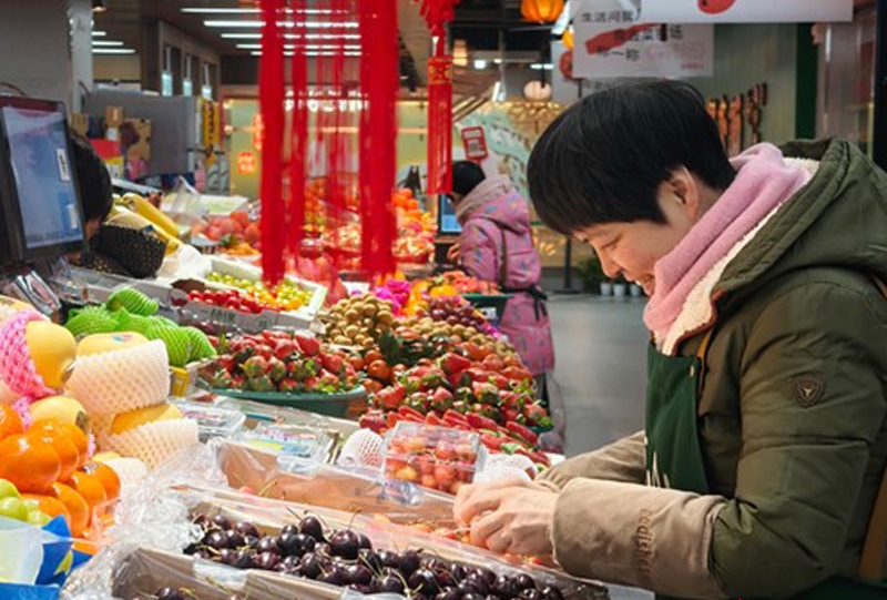 提及春節(jié)期間的休息安排,郭燕與羅志妹相視一笑,“大家團(tuán)圓的時(shí)間更是我們不能松懈的時(shí)候,我們會輪流在崗,守護(hù)好百姓的‘菜籃子’?!闭f完,郭燕抬頭看到顧客拿著一袋水產(chǎn)品笑呵呵地站在玻璃窗前晃了晃手,隨即便起身繼續(xù)投入工作中。