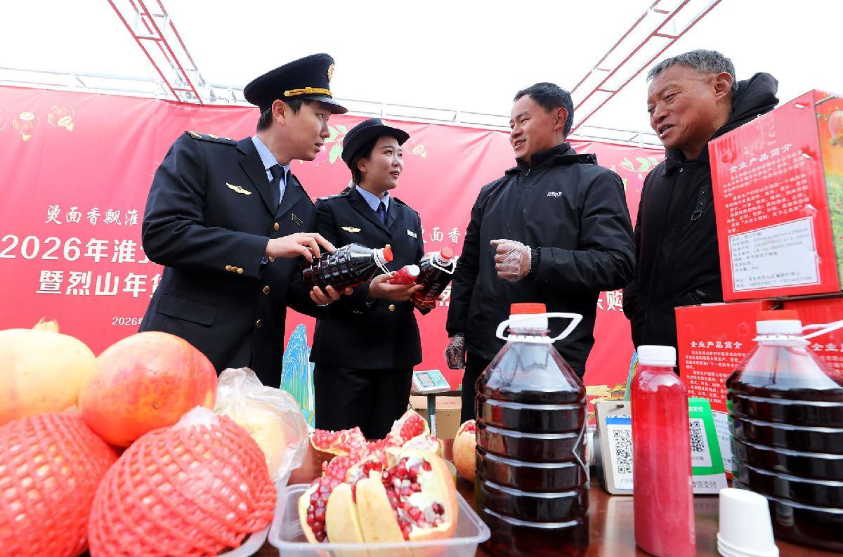 圖為1月10日,工作人員在烈山年貨節(jié)上進行巡查。