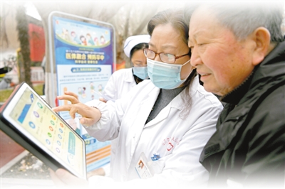 2020年12月2日,安徽理工大學(xué)第一附屬醫(yī)院醫(yī)護(hù)人員走進(jìn)淮南市田家庵區(qū)洞山社區(qū),指導(dǎo)老年患者使用皖事通平臺(tái)淮南分站上線的該院互聯(lián)網(wǎng)醫(yī)院應(yīng)用服務(wù),方便老年患者使用手機(jī)就醫(yī)問診?! £?彬攝(影像中國(guó)) |