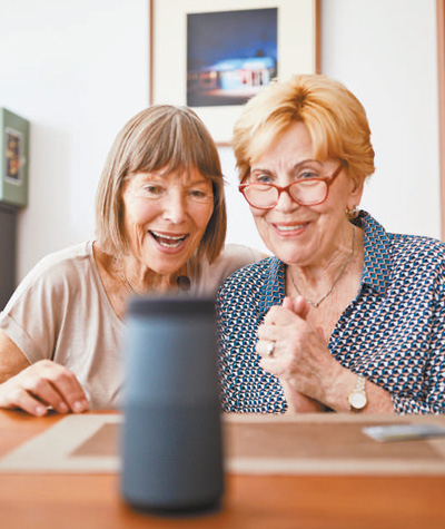 德國(guó)柏林兩位老人在家中使用藍(lán)牙語(yǔ)音設(shè)備?! ∮跋裰袊?guó) |