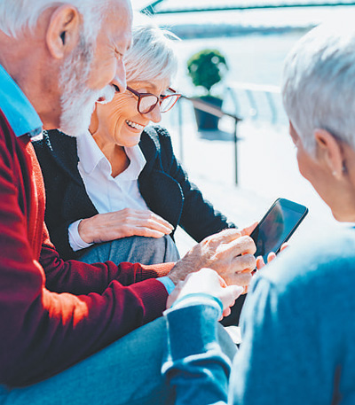 塞爾維亞三位老人在戶外交流學(xué)習(xí)使用智能手機(jī)經(jīng)驗(yàn)。 |