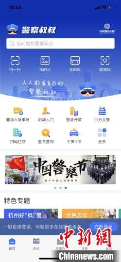 中新網(wǎng)杭州1月10日電(蘇禮昊 傅宏波 徐冏 葉雯)為進(jìn)一步提升“智慧警務(wù)”賦能民生服務(wù)能力,1月10日杭州市公安局舉行新聞新發(fā)布會(huì),宣布新版“警察叔叔”APP正式上線。據(jù)了解,群眾通過(guò)新版“警察叔叔”APP,可以一鍵辦理戶籍、流動(dòng)人口、車(chē)駕管、出入境等85項(xiàng)高頻應(yīng)用的公安政務(wù)事項(xiàng),實(shí)現(xiàn)85項(xiàng)事項(xiàng)的線上線下“一窗通辦”。