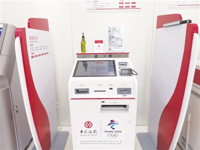 某國有大行網(wǎng)點智能機具上方放有數(shù)字人民幣標識。 |