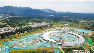 北京懷柔綜合性國家科學(xué)中心目前正在加速推進(jìn)科學(xué)設(shè)施平臺(tái)建設(shè)。圖為建設(shè)中的高能同步輻射光源(無人機(jī)照片)。新華社記者 金立旺攝