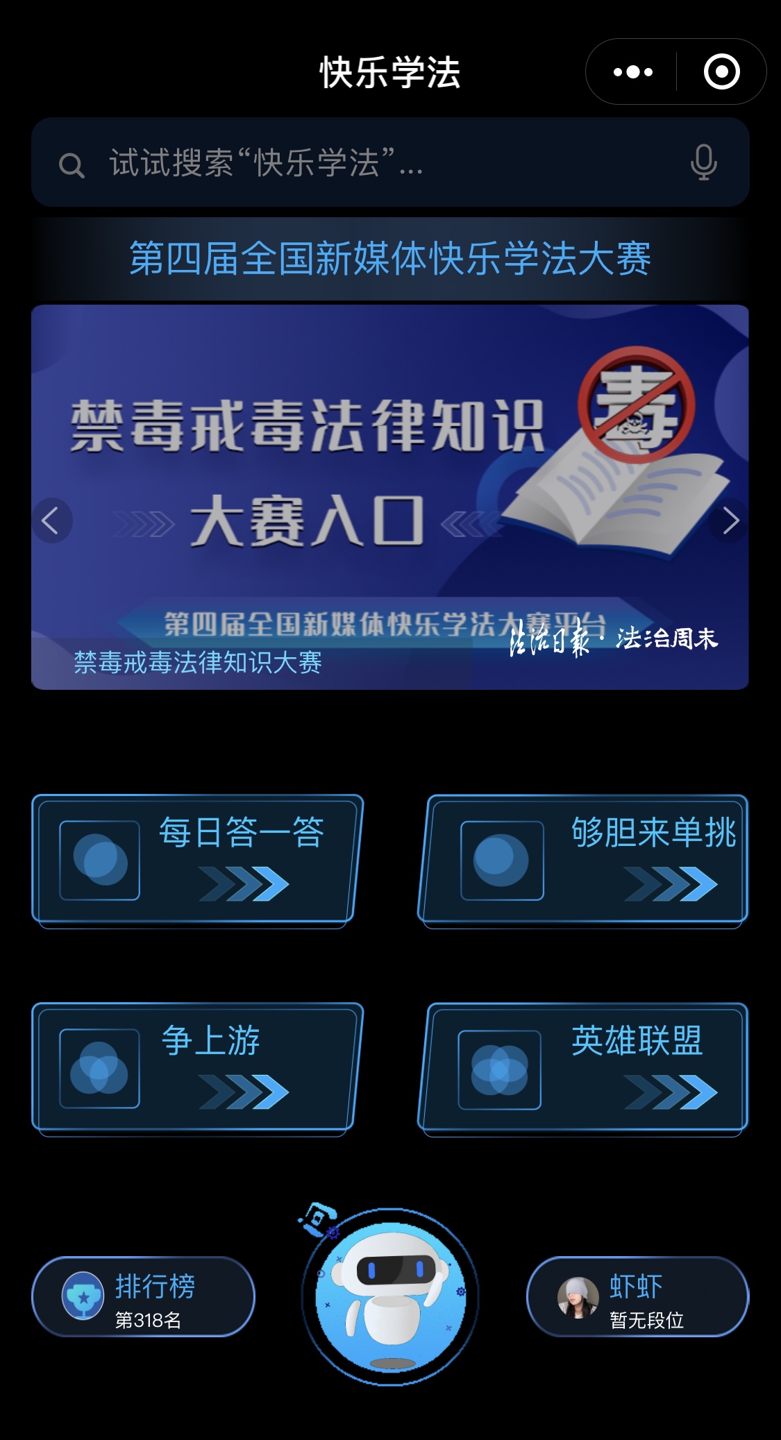 Step2:點擊首頁底部導航欄內(nèi)的“禁毒戒毒”或“知識大賽”按鈕,