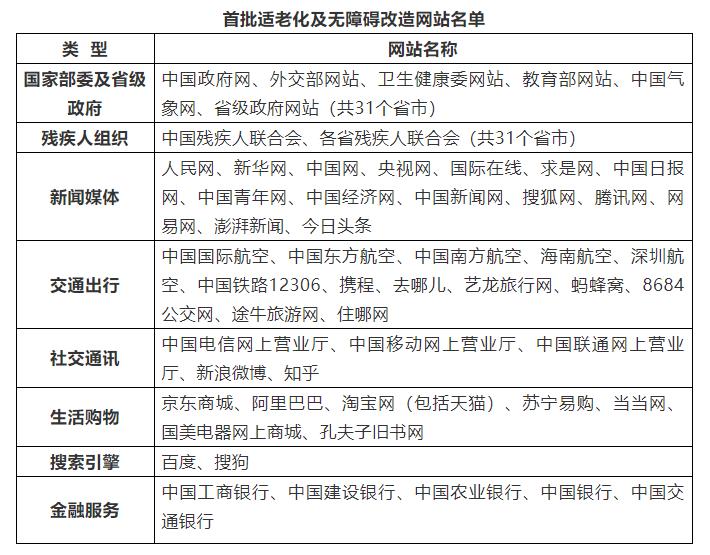 《方案》提出,開展互聯(lián)網(wǎng)主要行業(yè)網(wǎng)站適老化及無障礙改造。緊密結(jié)合老年人、殘疾人等群體的實際需求,對《工業(yè)和信息化部中國殘疾人聯(lián)合會關(guān)于推進(jìn)信息無障礙的指導(dǎo)意見》(工信部聯(lián)信管〔2020〕146號)中提出的與老年人、殘疾人等群體工作、生活密切相關(guān)的公共服務(wù)類網(wǎng)站開展適老化及無障礙改造。首批優(yōu)先推動國家相關(guān)部委及省級人民政府、殘疾人組織、新聞媒體、交通出行、金融服務(wù)、社交通訊、生活購物、搜索引擎等8大類、共115家網(wǎng)站進(jìn)行改造。中國互聯(lián)網(wǎng)協(xié)會協(xié)助基礎(chǔ)電信企業(yè)及網(wǎng)站接入服務(wù)商加快互聯(lián)網(wǎng)無障礙服務(wù)體系建設(shè),持續(xù)推動互聯(lián)網(wǎng)信息無障礙環(huán)境建設(shè)健康發(fā)展。