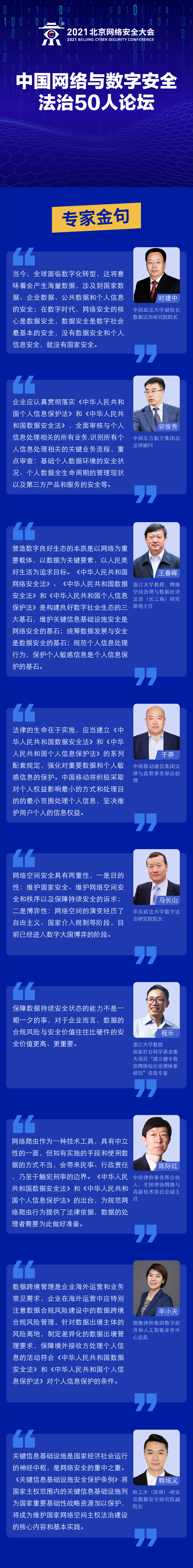 2021年8月26日下午,首屆“中國(guó)網(wǎng)絡(luò)與數(shù)據(jù)安全法治50人論壇”亮相北京網(wǎng)絡(luò)安全大會(huì)(BCS 2021)。本屆論壇作為北京網(wǎng)絡(luò)安全大會(huì)(BCS 2021)系列重要論壇之一,以“構(gòu)建網(wǎng)絡(luò)空間法治基石 營(yíng)造良好數(shù)字法治生態(tài)”為主題展開。