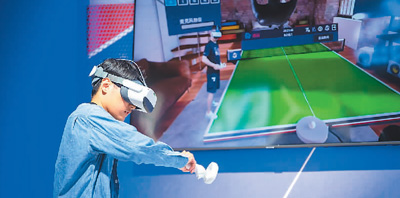 今年服貿(mào)會首次設(shè)置數(shù)字服務(wù)專區(qū),展示無人駕駛、智慧交通、建筑數(shù)字化、新視聽等服務(wù)領(lǐng)域最新前沿、最新成果和技術(shù)應(yīng)用。圖為9月1日,國家會議中心展館內(nèi),與會人員在體驗VR設(shè)備。 |