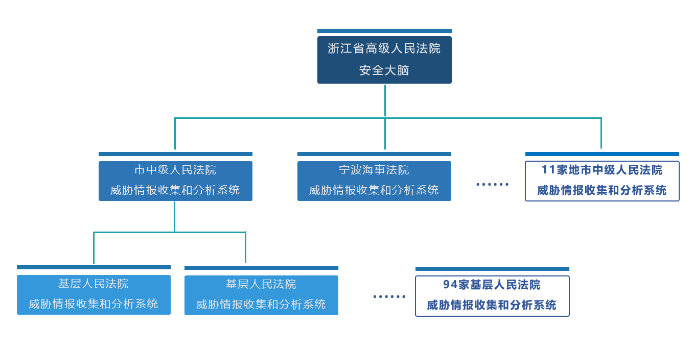 為了給“全域數(shù)字法院”構(gòu)筑全局、主動的網(wǎng)絡(luò)安全體系化防護,保障數(shù)字化改革的順利推進,浙江高院聚焦法院網(wǎng)絡(luò)基礎(chǔ)設(shè)施和信息系統(tǒng)建設(shè)、運行、維護、使用的安全管理,進一步強化制度建設(shè),出臺《浙江法院網(wǎng)絡(luò)安全管理辦法(試行)》及相關(guān)技術(shù)規(guī)范,建立健全了網(wǎng)絡(luò)安全測評、應(yīng)急處置、檢查通報等機制。同時,沿著“架構(gòu)安全——被動防御——積極防御——威脅情報”的建設(shè)路徑,浙江高院依托威脅情報和大數(shù)據(jù)技術(shù),開展了安全大腦的建設(shè),形成了初級威脅可防御、高級威脅可監(jiān)測的動態(tài)安全能力,并兼顧防御、檢測、響應(yīng)和預防四個方面,安全能力有了質(zhì)的飛躍。