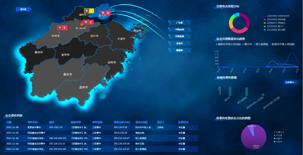 2021年,在省網(wǎng)信辦、公安廳牽頭的攻防實戰(zhàn)演習中,浙江高院不僅確保了防守目標“零失陷”,在及早發(fā)現(xiàn)攻擊行為、快速溯源分析、及時響應(yīng)處置等主動防御層面也有較好表現(xiàn)。