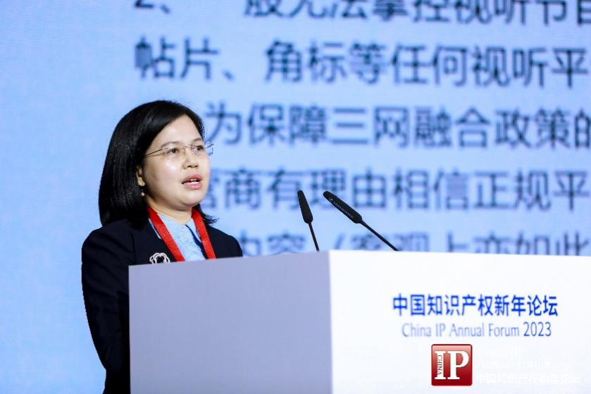 隨著電信網(wǎng)、計算機互聯(lián)網(wǎng)和有線電視網(wǎng)“三網(wǎng)融合”的深入推進,電視轉(zhuǎn)播行業(yè)獲得了長足的發(fā)展,也引發(fā)了眾多涉“三網(wǎng)融合”的著作權(quán)侵權(quán)糾紛。如何結(jié)合技術(shù)發(fā)展對電視轉(zhuǎn)播行為中的相關(guān)主體進行準(zhǔn)確的法律定性?怎樣統(tǒng)一相關(guān)訴訟案件中的司法裁判標(biāo)準(zhǔn)和尺度?這些都是值得探討的問題。近日,未來電視有限公司首席法律顧問、知識產(chǎn)權(quán)與法務(wù)中心總經(jīng)理楊幸芳在由《中國知識產(chǎn)權(quán)》雜志主辦的“第十三屆中國知識產(chǎn)權(quán)新年論壇暨2023中國知識產(chǎn)權(quán)經(jīng)理人年會”上,以“電視牌照業(yè)務(wù)中電信運營商的法律責(zé)任辨析”為主題作了演講,圍繞電視牌照業(yè)務(wù)、電信運營商、司法裁判、責(zé)任認(rèn)定等關(guān)鍵詞,分析了“三網(wǎng)融合”政策在電信運營商涉著作權(quán)法律責(zé)任判定中的考量。