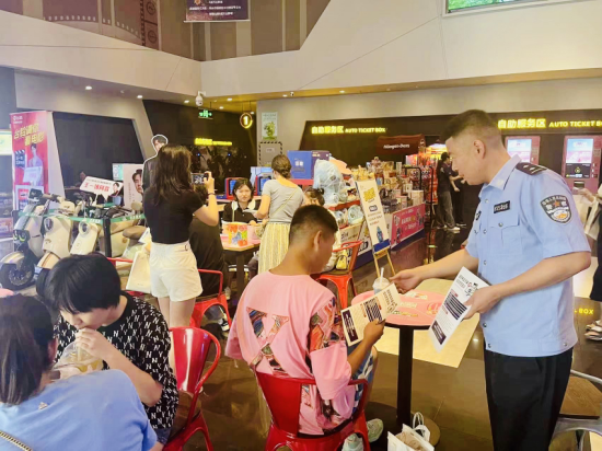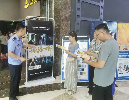 影片開始前,該分局反詐中心民警通過在影院醒目位置張貼反詐海報(bào)、發(fā)放反詐手冊(cè)、懸掛反詐條幅、擺放反詐展板、講解反詐知識(shí)、問答互動(dòng)等多種形式,向觀影群眾普及反詐知識(shí),讓大家對(duì)當(dāng)前電信網(wǎng)絡(luò)詐騙發(fā)案形式及種類有了更直觀、更深刻的認(rèn)識(shí)。此外,民警還現(xiàn)場(chǎng)指導(dǎo)大家下載安裝國(guó)家反詐中心APP。