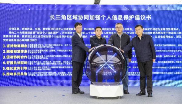 中央網(wǎng)信辦有關(guān)部門負(fù)責(zé)同志,上海、江蘇、浙江、安徽“三省一市”網(wǎng)信辦負(fù)責(zé)同志出席論壇開幕式。開幕式上發(fā)布了《長三角區(qū)域協(xié)同加強(qiáng)個人信息保護(hù)倡議書》,提出堅持統(tǒng)籌理念、完善標(biāo)準(zhǔn)體系、促進(jìn)協(xié)同合作、開展執(zhí)法聯(lián)動、強(qiáng)化宣傳引導(dǎo)、推動多元共治等六項倡議。華東政法大學(xué)、上海社科院聯(lián)合評估項目組同時發(fā)布了“亮劍浦江”專項執(zhí)法行動績效評估報告。報告總結(jié)了今年6月以來上海市網(wǎng)信辦、上海市市場監(jiān)管局會同相關(guān)行業(yè)主管部門開展消費(fèi)領(lǐng)域個人信息權(quán)益保護(hù)專項行動的成果成效,并就協(xié)同構(gòu)建個人信息保護(hù)長效治理機(jī)制提出建議。上海市消保委等參與“亮劍浦江”專項執(zhí)法行動的11家優(yōu)秀單位受到表彰。