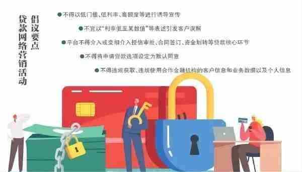 具體來看,貸款網(wǎng)絡(luò)營銷不得含有以下內(nèi)容:其中包括,虛假或引人誤解的內(nèi)容,引用不真實(shí)、不準(zhǔn)確或未經(jīng)核實(shí)的數(shù)據(jù)和資料,以低門檻、低利率、高額度等進(jìn)行誘導(dǎo)宣傳,以及法律法規(guī)、國家金融管理規(guī)定禁止的其他內(nèi)容。