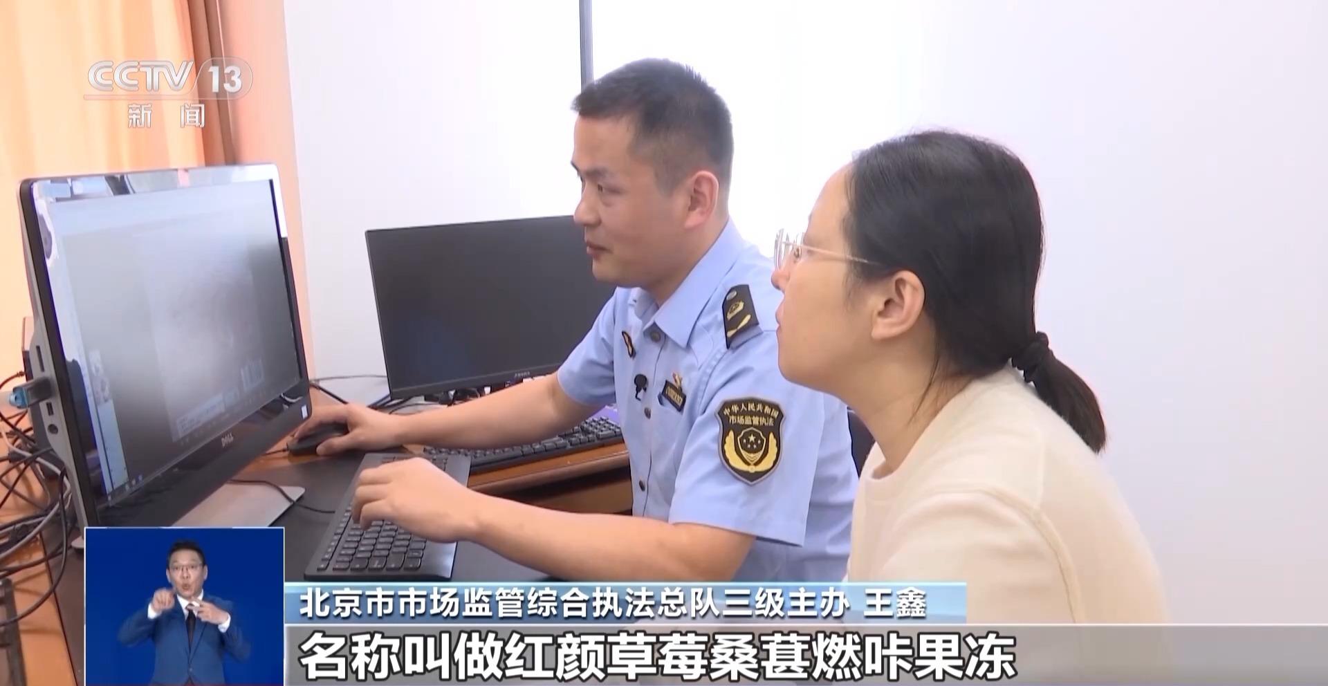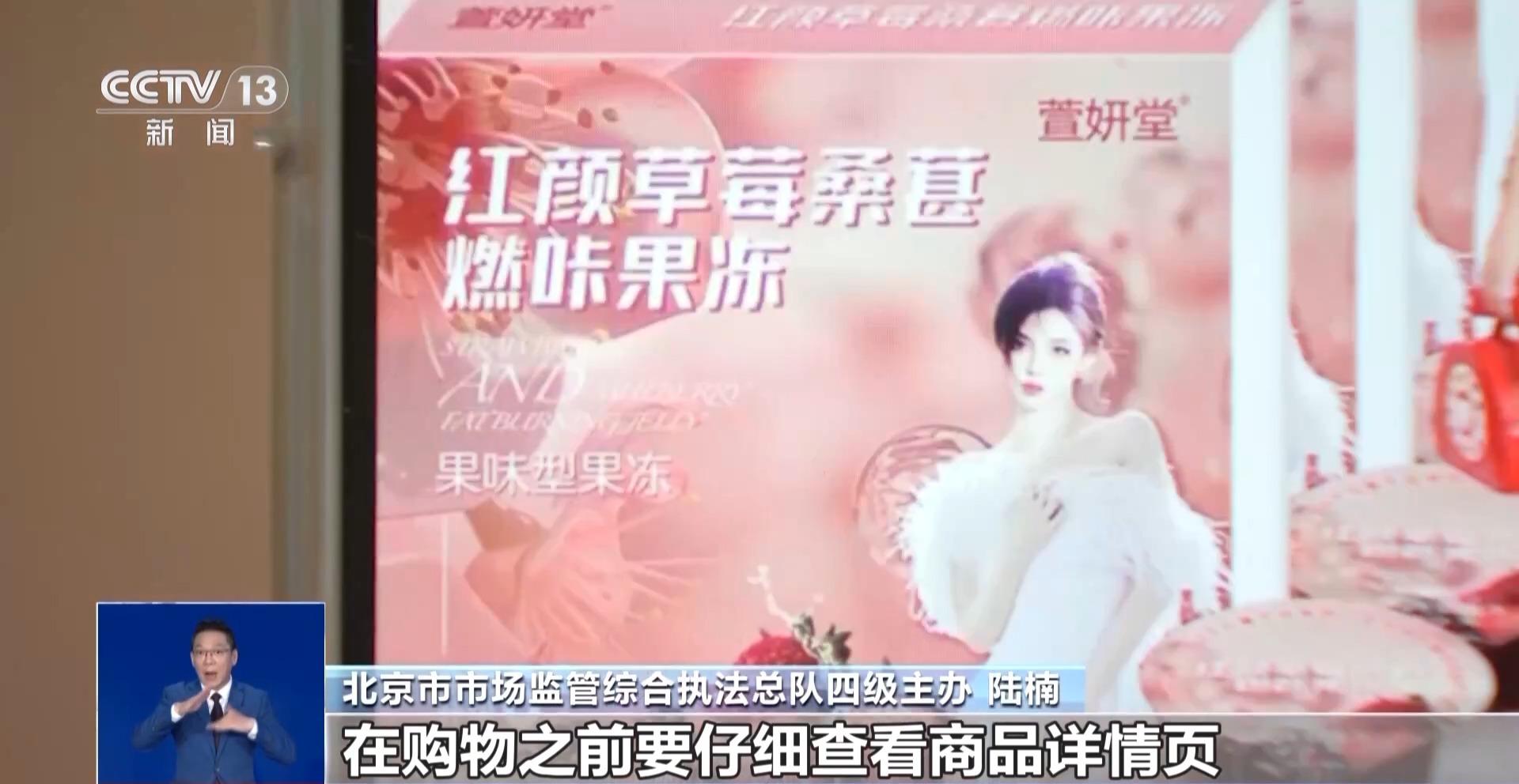 北京市市場監(jiān)管綜合執(zhí)法總隊三級主辦 王鑫:我們可以看到這款產(chǎn)品的名稱叫作紅顏草莓桑葚燃咔果凍,它有食品生產(chǎn)許可證的編號,沒有保健食品的藍帽子標志,也沒有藥品的生產(chǎn)許可證,它只是一款普通的食品。