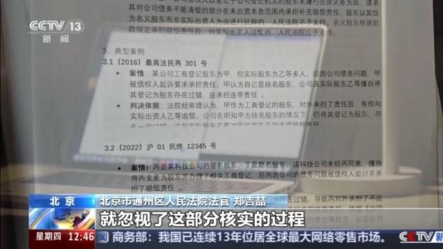 北京市通州區(qū)人民法院法官 鄭吉喆:特別是當(dāng)時她援引了上海一中院的2022滬01民終12345號,這是一個民間借貸的案件,這個跟現(xiàn)在原告代理人向我們提交的股權(quán)代持是一點關(guān)系都沒有,可以說叫風(fēng)馬牛不相及。