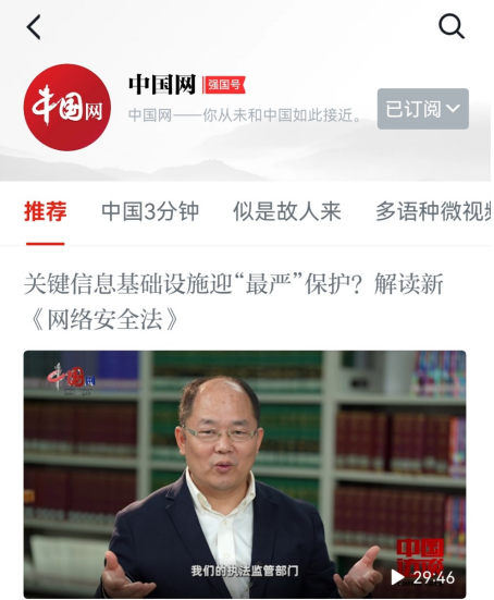 中國網(wǎng):小切口 深挖掘 廣輻射 推動新修改《網(wǎng)絡(luò)安全法》貫徹實施