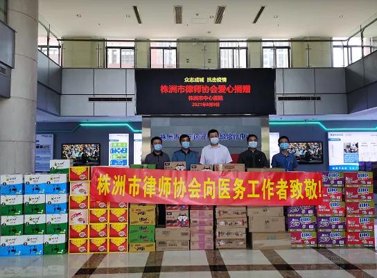株洲市律師協(xié)會(huì)撥付1萬(wàn)元購(gòu)買八寶粥、方便面、牛奶等緊缺生活物資捐贈(zèng)給株洲市中心醫(yī)院。