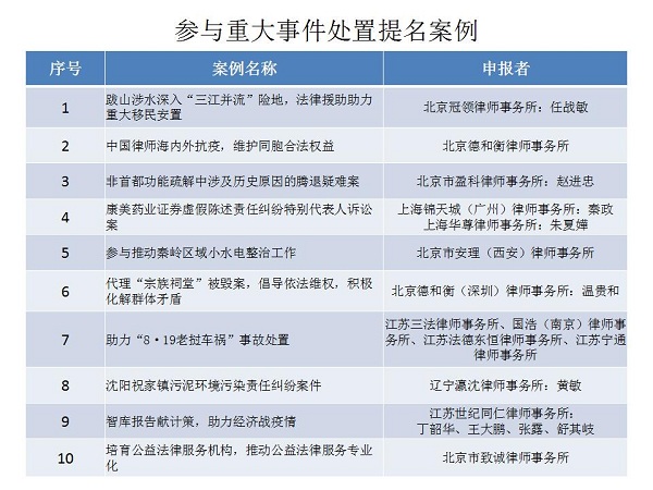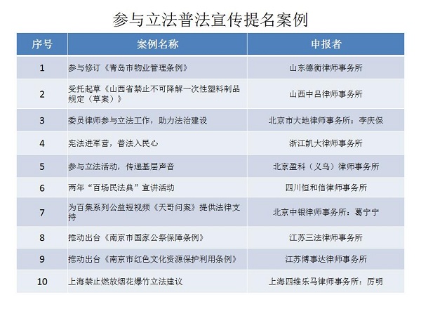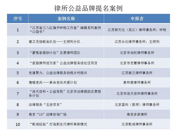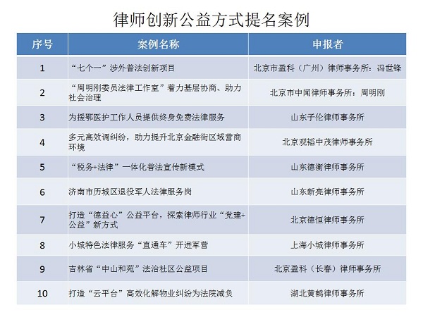 結(jié)合公眾投票和專(zhuān)家評(píng)審,十大律師公益類(lèi)別最終產(chǎn)生了一百個(gè)典型案例,一百個(gè)提名案例。