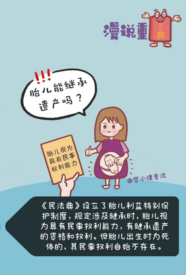 《中華人民共和國民法典》第十六條 【胎兒利益保護】涉及遺產(chǎn)繼承、接受贈與等胎兒利益保護的,胎兒視為具有民事權(quán)利能力。但是,胎兒娩出時為死體的,其民事權(quán)利能力自始不存在。