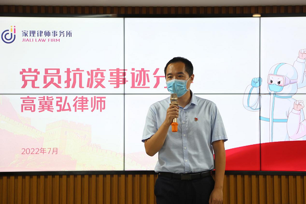 高冀弘律師在分享自己的事跡時表示,疫情遠未結束,希望更多的黨員積極參與疫情防疫志愿服務工作,為國分憂、為民解難。