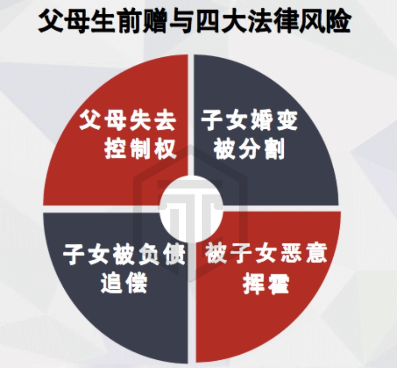 但從財(cái)富傳承角度來(lái)看,贈(zèng)與也同樣存在著缺陷。一旦贈(zèng)與行為完成,傳承人會(huì)失去對(duì)財(cái)產(chǎn)的控制,若受贈(zèng)人不孝或不盡贍養(yǎng)義務(wù)、發(fā)生婚變、缺乏駕馭財(cái)產(chǎn)的能力、對(duì)外負(fù)債或隨意揮霍財(cái)產(chǎn),都可能導(dǎo)致財(cái)產(chǎn)的流失。