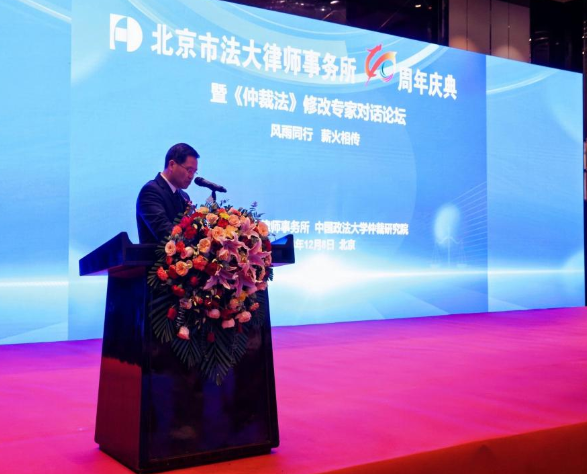 12月8日,北京市法大律師事務(wù)所成立四十周年慶典暨仲裁法修改專(zhuān)家對(duì)話論壇舉行。中國(guó)政法大學(xué)法學(xué)院與北京市法大律師事務(wù)所“卓越法治人才聯(lián)合培養(yǎng)基地”揭牌?;顒?dòng)對(duì)法大律所的發(fā)展歷程進(jìn)行了總結(jié)和貢獻(xiàn)表彰,對(duì)仲裁法修改涉及的熱點(diǎn)和難點(diǎn)進(jìn)行交流探討。
