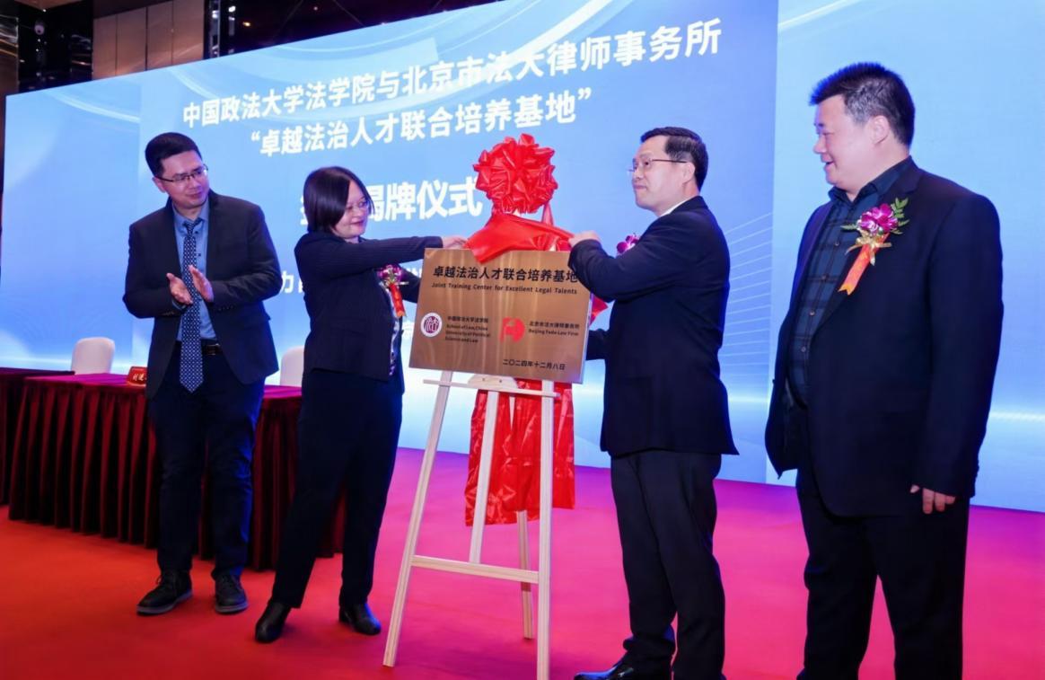 隨后舉行了中國(guó)政法大學(xué)法學(xué)院與北京市法大律師事務(wù)所“卓越法治人才聯(lián)合培養(yǎng)基地”簽約揭牌儀式。