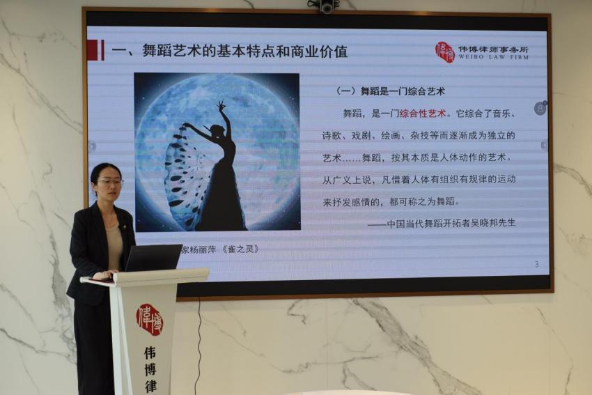 偉博律所高級(jí)合伙人鮑爽以《舞蹈形象司法保護(hù)前沿》為題,對舞蹈藝術(shù)的基本特點(diǎn)和商業(yè)價(jià)值、司法實(shí)踐中的保護(hù)現(xiàn)狀及法律保護(hù)的前沿?zé)狳c(diǎn)問題分享了自己的觀點(diǎn)。鮑律師以其主辦的《月光》舞蹈作品案為切入點(diǎn),深入剖析舞蹈形象在著作權(quán)保護(hù)中的特殊性:舞蹈動(dòng)態(tài)表達(dá)的非固定性導(dǎo)致其“靜態(tài)造型”難以獲得傳統(tǒng)著作權(quán)法的充分保護(hù),而實(shí)質(zhì)性相似侵權(quán)比對中動(dòng)作編排、視覺呈現(xiàn)等多維度的復(fù)雜性亦構(gòu)成司法認(rèn)定難點(diǎn)。