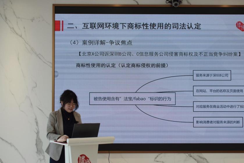 偉博律所涉外部副部長周易凡以《互聯(lián)網(wǎng)環(huán)境下商標(biāo)性使用的司法認(rèn)定》為題,分析討論了互聯(lián)網(wǎng)環(huán)境下商標(biāo)性使用的新場景,結(jié)合具體案例的司法認(rèn)定分享了前沿實(shí)務(wù)啟示。周易凡結(jié)合司法實(shí)踐中的經(jīng)典案例,系統(tǒng)闡釋了互聯(lián)網(wǎng)商標(biāo)性使用的認(rèn)定邊界、核心判斷標(biāo)準(zhǔn),以及認(rèn)定商標(biāo)侵權(quán)行為的判斷標(biāo)準(zhǔn),呼吁互聯(lián)網(wǎng)環(huán)境下的商標(biāo)性使用認(rèn)定需兼顧技術(shù)特征與商業(yè)邏輯,司法機(jī)關(guān)需在保護(hù)商標(biāo)權(quán)與促進(jìn)技術(shù)創(chuàng)新間尋求平衡。