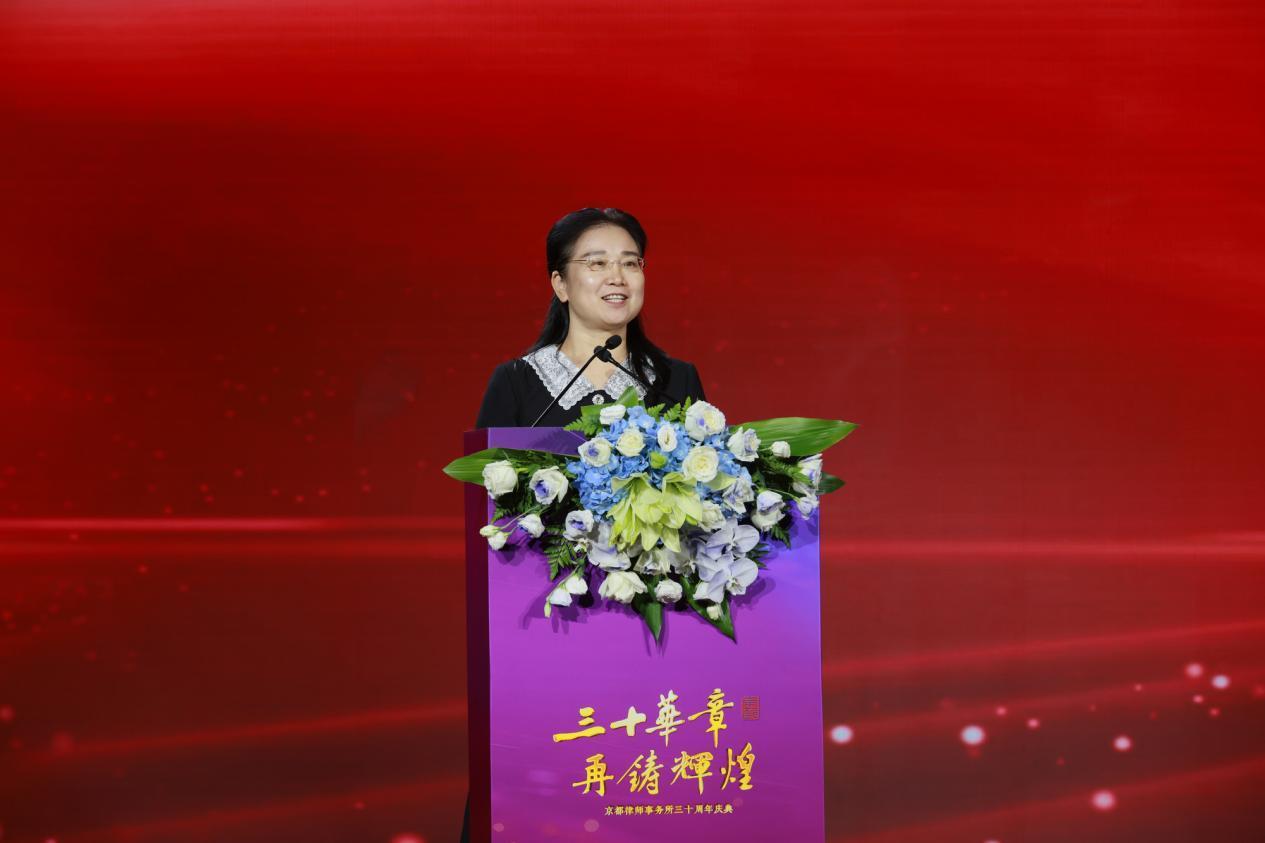 中國政法大學副校長劉艷紅在致辭中感謝京都所長期以來對中國政法大學教育事業(yè)的大力支持。京都所將理論與實踐相融合,形成了鮮明的品牌特色。中國政法大學與京都所從師資教育到學術研討,再到公益捐贈等方面均有合作,期待繼續(xù)見證京都所蓬勃發(fā)展。