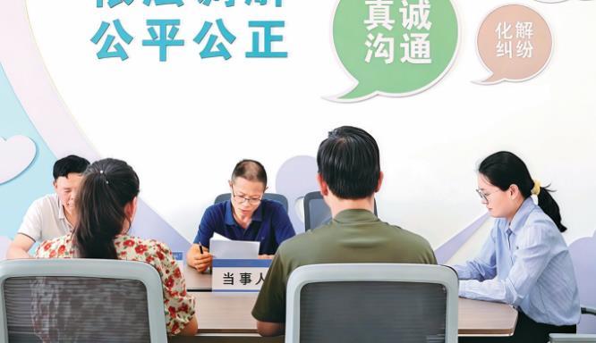 圖為律師張琴(右一)在永定鎮(zhèn)司法所參與調(diào)解。