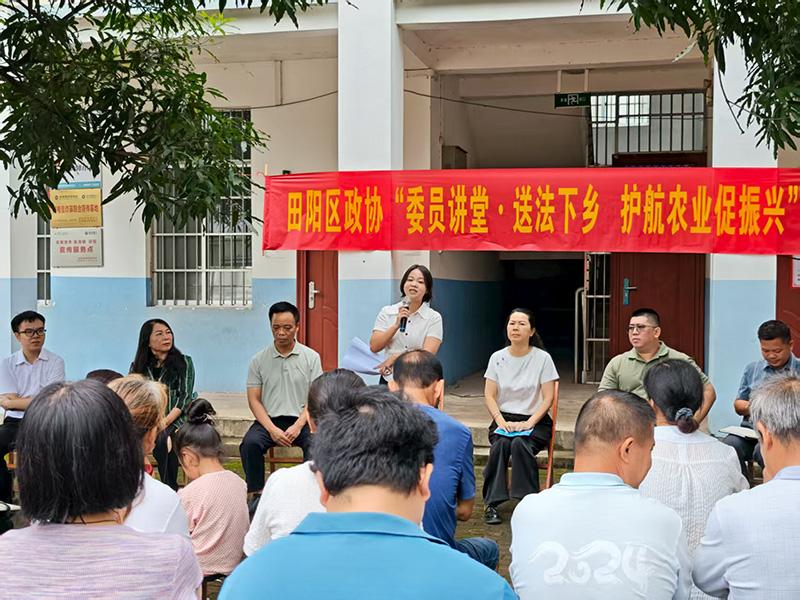 圖為百色市政協(xié)委員班雁霞到百色市田陽(yáng)區(qū)坡洪鎮(zhèn)郎含村開(kāi)展“委員講堂·送法下鄉(xiāng) 護(hù)航壯鄉(xiāng)促振興”專項(xiàng)活動(dòng)。