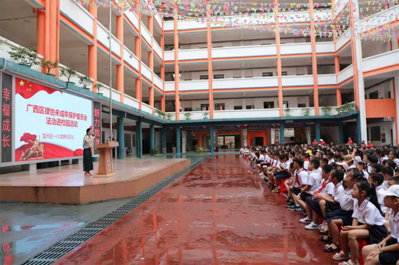 圖為河池市人大代表、宜州區(qū)政協(xié)委員韋佳佳到學(xué)校為學(xué)生們講授普法課。