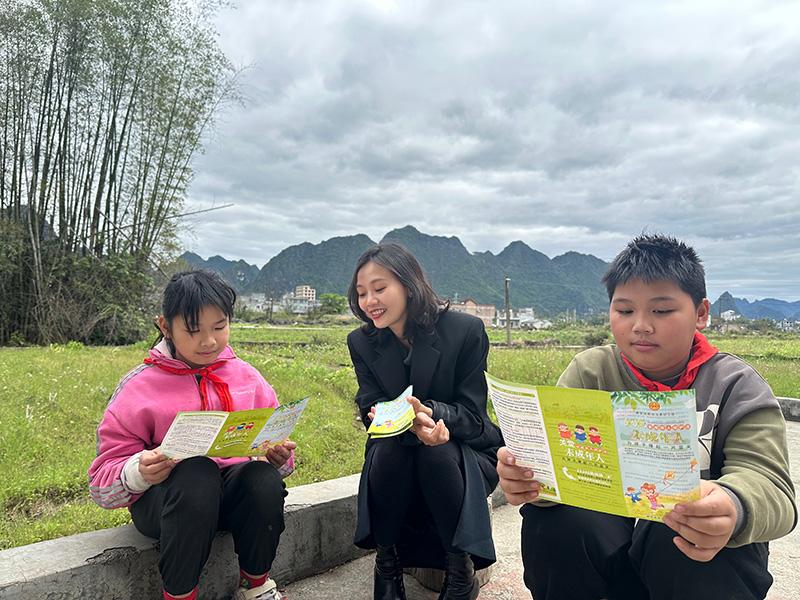 圖為都安瑤族自治縣政協(xié)委員賴俞希給都安瑤族自治縣高嶺鎮(zhèn)巴陽(yáng)屯的小學(xué)生普法。