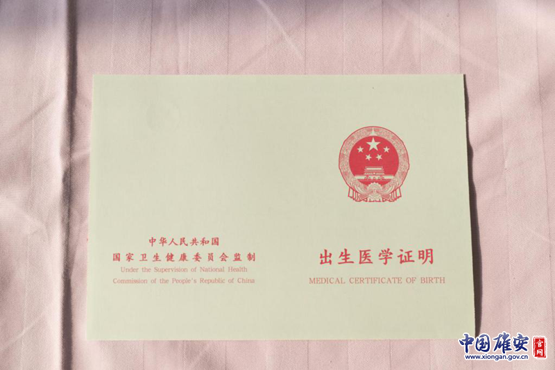 出生醫(yī)學證明(第六版)封底落款字樣為“中華人民共和國國家衛(wèi)生健康委員會監(jiān)制”。中國雄安官網記者毛鶴然 攝