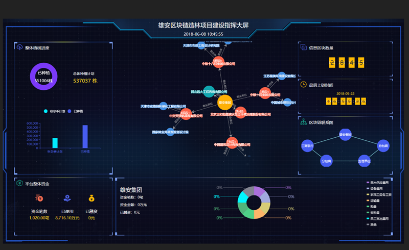 圖為雄安區(qū)塊鏈造林項目建設(shè)指揮大屏。